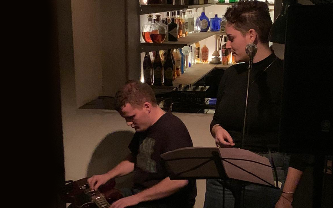 Un dúo de versiones que combina el jazz con registros más modernos. Mezclan varios instrumentos musicales con un “loop station” para montar las canciones versionadas y acompañar las voces.